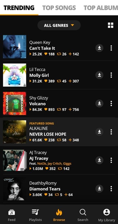 Audiomack is a very popular music streaming app on Android and iOS and it’s known to be one of the best music streaming apps. This app lets you stream music online and offline and one of the features it’s known for is that you can download music and play them offline.