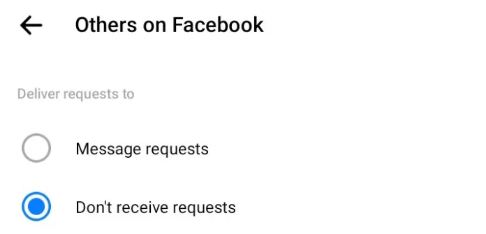 Choose the option “Don’t Receive Requests” on the next page that shows up. That’s all! That’s how you turn off message requests on Facebook from unknown people. And you can do the same for “Others on Instagram.”