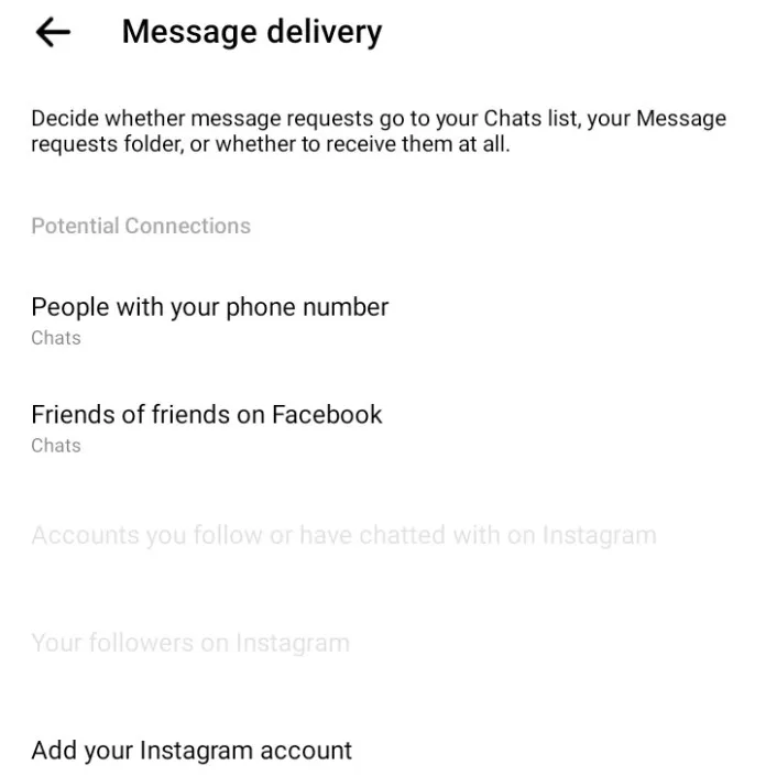 You will see three options upon doing so: Chats, Message Requests, and Don’t Receive Requests. You must set it to Don’t Receive Requests. This will turn off message requests in that category.
