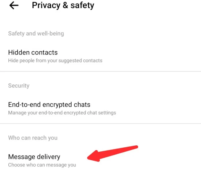 Inside the Privacy tab, you’ll find various privacy-related options to manage how your account interacts with others. One of the options within this tab is titled “Message Delivery” Tap on it. The option controls how messages from people who are not your friends on Facebook are delivered to your Messenger account.