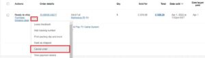 In the seller’s hub, go to Orders. Alternatively, you can go to My eBay and select Sold. Find the order you want to cancel, open the drop-down menu next to it marked with a small arrow, and select Cancel Order.