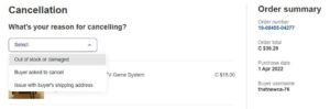 Sometimes, sellers may sell the item on a different platform, or the item may get damaged accidentally. In these cases, the seller can cancel the order so that eBay notifies the buyer, and if the buyer has already paid, they will receive a refund.