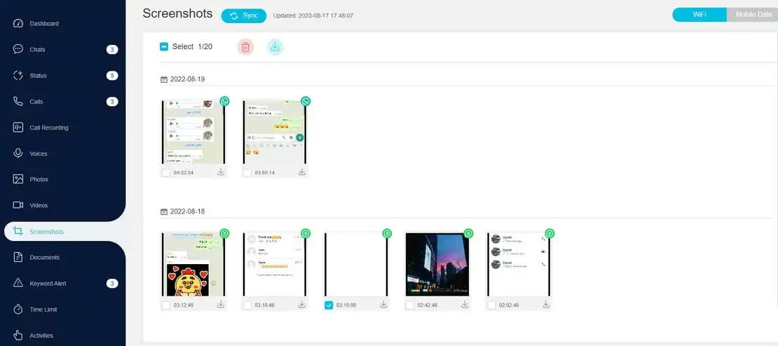 - Capture screenshots: The app automatically captures screenshots of the target device’s WhatsApp activity, providing you with visual evidence of conversations.